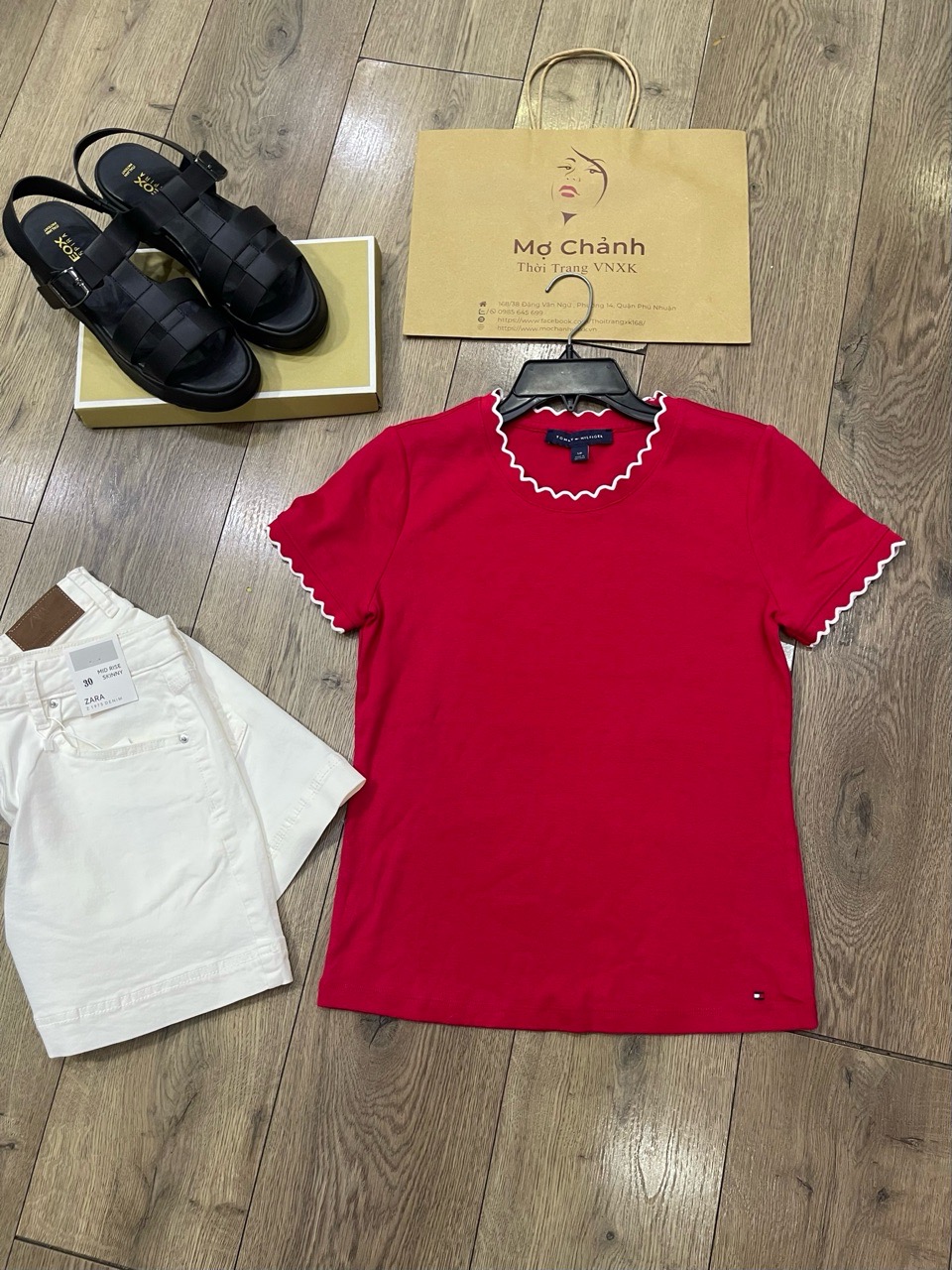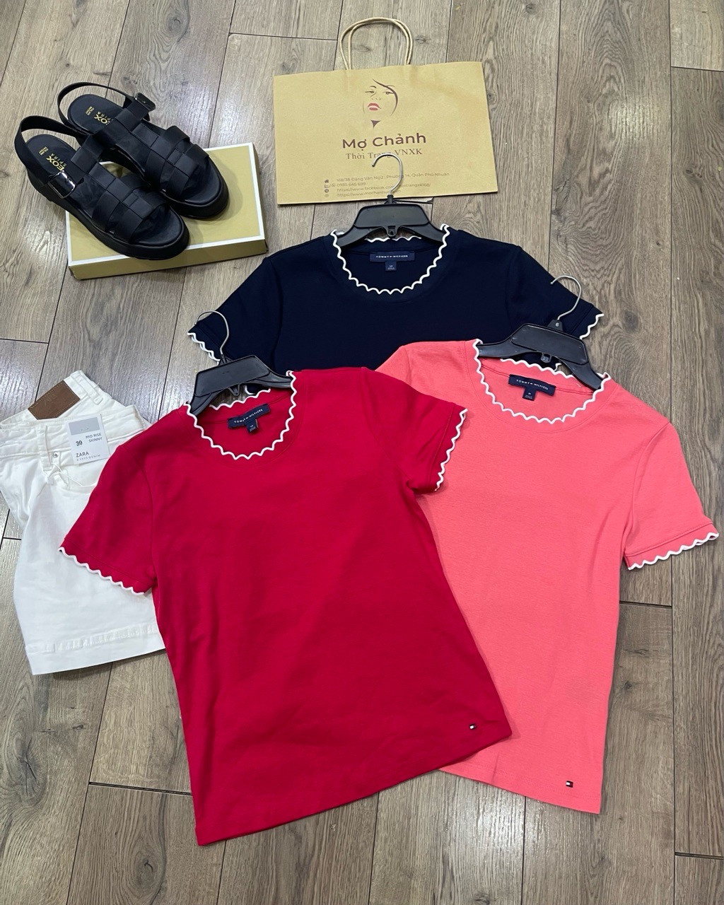 ÁO TOMMY CỔ VIỀN TRẮNG
