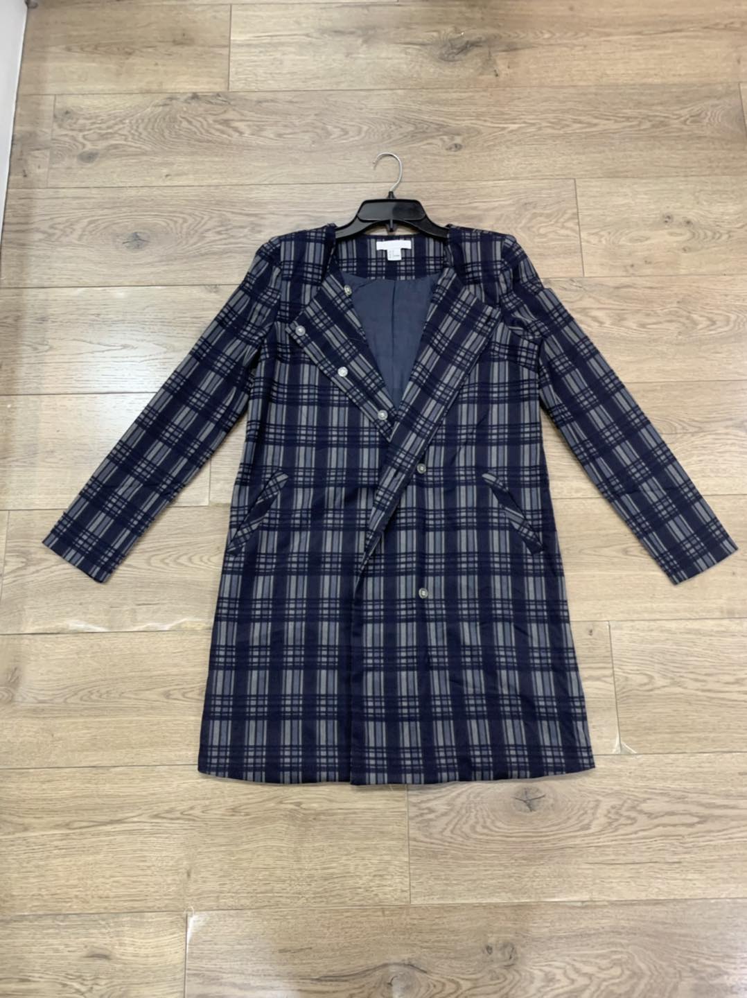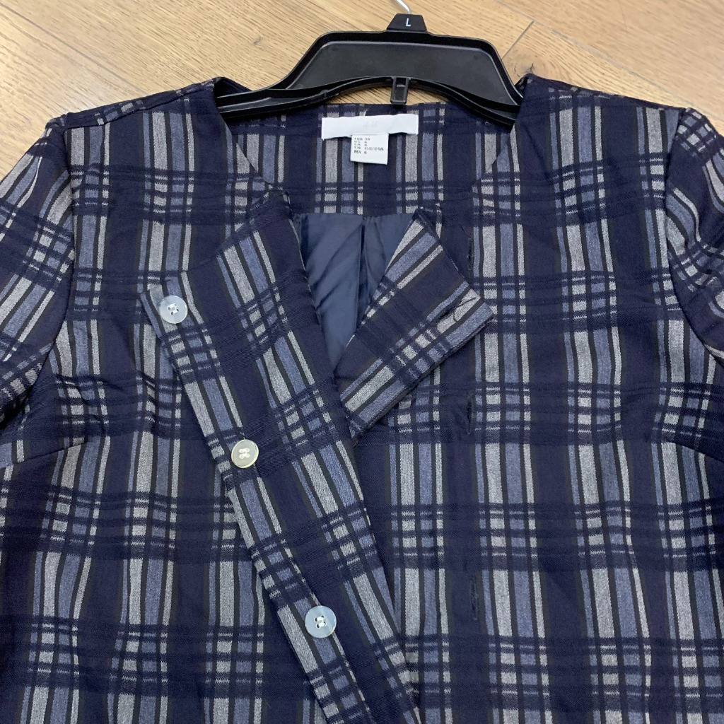 Đầm Hm hoạ tiết caro, khoá cúc, có 2 bên túi.